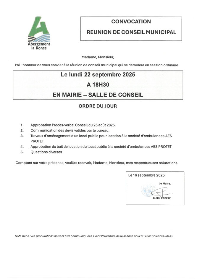 CONVOCATION A LA PROCHAINE REUNION